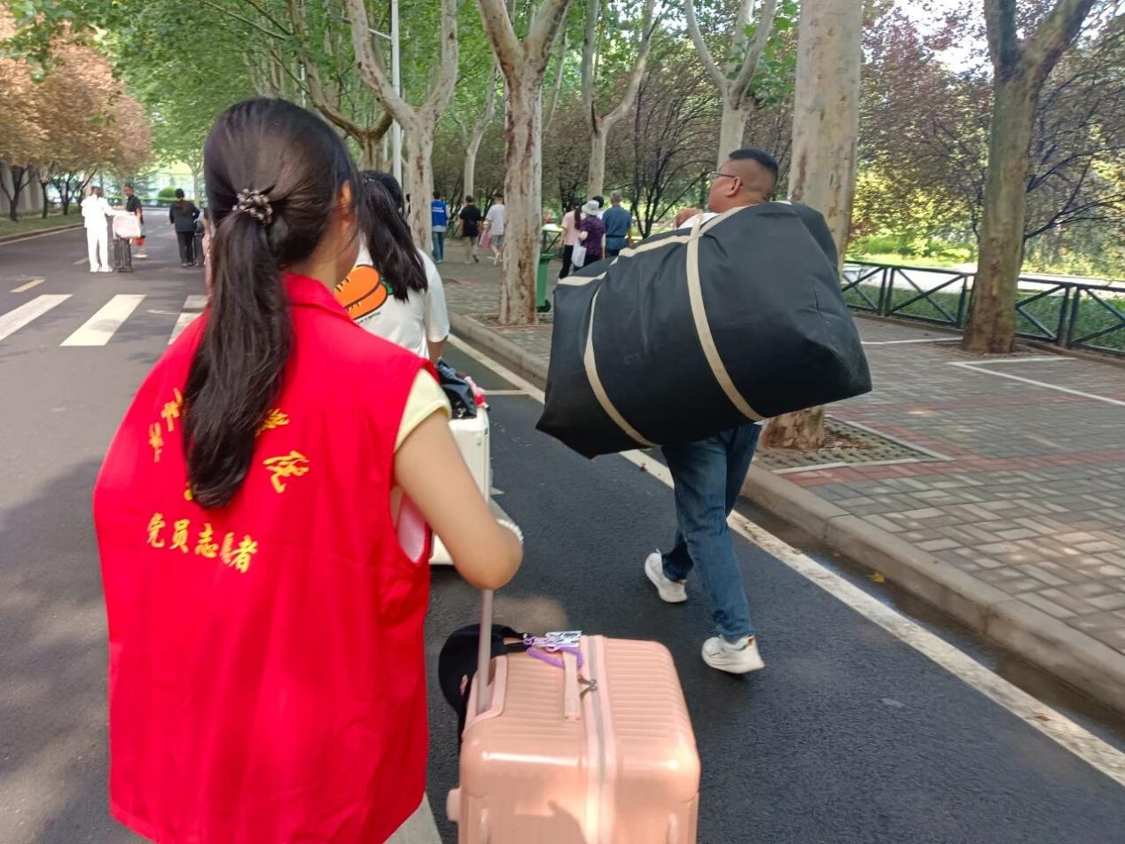 九月的校园,因新生的到来而焕发生机。在迎新现场,一幕幕暖心画面格外动人。志愿者们穿梭在人群中,或肩扛沉重的行李箱,或手提鼓鼓的编织袋,汗水浸湿了衣背,却丝毫未减他们的热情。他们用坚实的臂膀,为初入校园的新生“搬”去了旅途的疲惫,“递”来了家一般的温暖。从校门口到宿舍楼,短短一段路,承载的是学长学姐对新生的关怀,更是校园里传承的互助精神。新生们脸上的局促渐渐被笑容取代,这份开学初的温情,也成为他们大学生活中难忘的第一笔色彩。