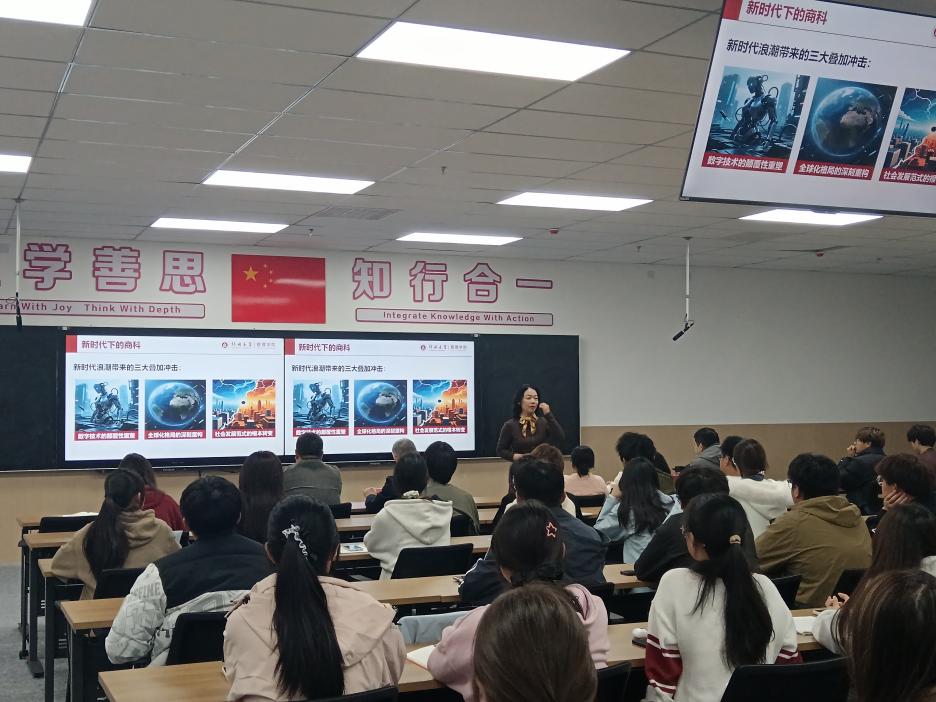 王淑英从“新时代下商科是什么、商科专业介绍与前沿、未来专业规划与建设”三方面进行了详细的讲授,并将人工智能、数字经济、数据驱动与商科专业相结合,提出了商科专业当前发展情况以及未来发展趋势,她强调商科学生要做好四年规划,在学习中不断践行和提高,要具备数字思维、跨学科交叉、技术能力、商科底色等多方面素质,全方面、多维度地提升自己的专业能力。