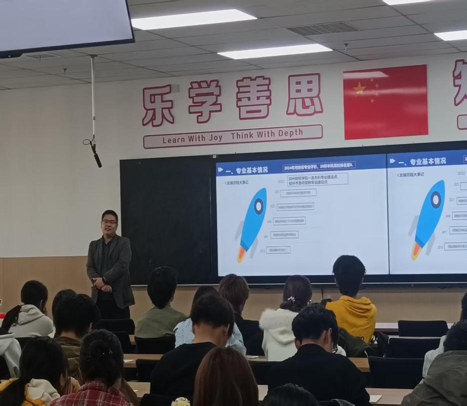10月31日,yl6809永利集团官网在航空港校区A4-3-110开展2025级新生专业认知活动。学院邀请郑州大学王淑英教授讲学,主题是《新时代商科专业的认知与规划》。yl6809永利集团官网院长罗党、副院长郭瑞强、各教研室主任与2025级新生一同参会。